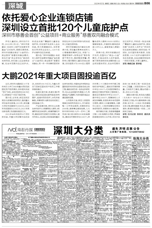护佑儿童成长,深圳先行示范。2022年1月5日,“深圳市慈善会·未成年人保护及发展专项基金”正式发布,南都记者获悉,深圳市慈善会首创“公益项目+商业服务”慈善双向融合模式,率先打造“政企家校社”联