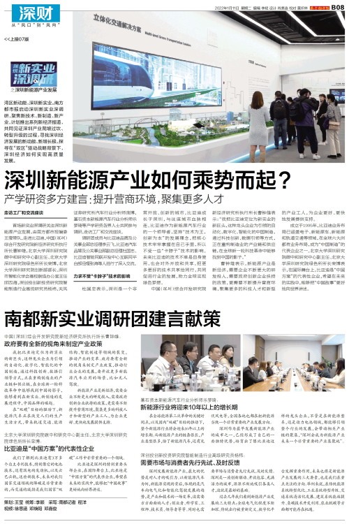 深圳新能源产业发展 湾区新动能,深圳新实业。南方都市报启动深圳新实业深调研,聚焦新技术、新制造、新产业,计划推出系列新经济报道,共同见证深圳产业爬坡过坎、转型升级的过程,寻找深圳经济发展的新动能