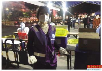 1月10日晚,深圳市罗湖区人民医院病案管理科的蓝兰没有被安排核酸采样工作,但她仍然前往采样点支援后勤工作。此前一天,她几乎一直站着为居民测核酸。 南都记者 蔡宇晴 摄