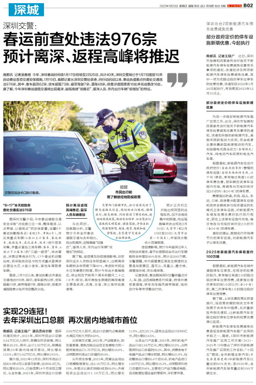 南都讯 记者吴春熠 今年,深圳春运时间由1月17日持续至2月25日,共计40天。深圳交警局已于1月7日提前10天启动春运各项交通安保措施。1月19日,南都记者从深圳交警处获悉,自行动启动以来,春运