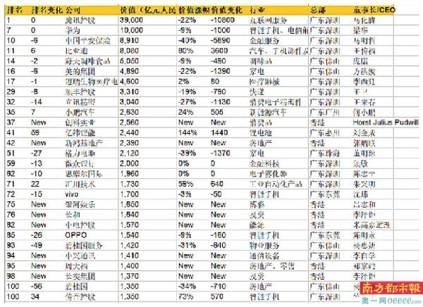 按照胡润榜单,中国平安是大湾区入榜企业中价值变化最大的企业之一,跌幅达40%。同时,美的下跌22%,格力下跌39%。作为新能源的受益者,比亚迪价值增长3600亿元,增幅80%。