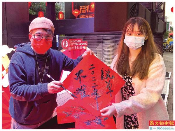元宵庆祝活动猜灯谜是必不可少的重要民俗文化。猜灯谜,写心愿,主办方邀请了知名艺术家尹小龙为市民朋友们现场书写2022新年心愿的关键词。