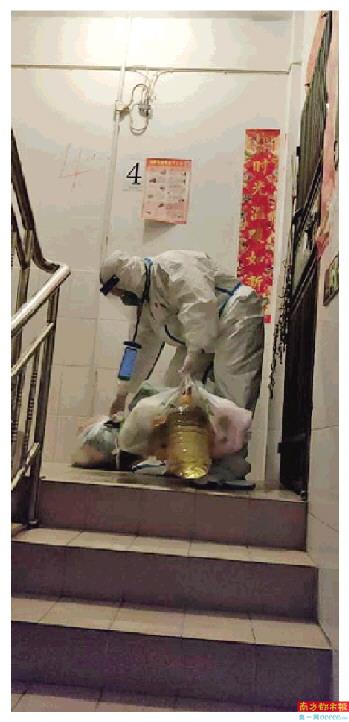 南都讯 记者张馨怡 “15栋的菜这就来!”2月21日一早,深圳市福田区沙头街道沙嘴村的管控区入口,身着防护服的“跑腿小分队”成员贺尔杨接过一大兜菜品,风风火火地就奔着封控区的15栋走去。这栋楼是封控区,他需要爬楼送到隔离住户门口,在仔细核对了门牌号后他敲了敲门,“您下单的菜到了,记得待会儿出来拿。”