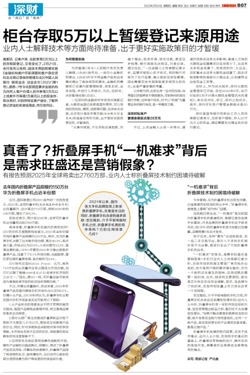 2021年以来,国内各大手机品牌陆续上新发售折叠屏手机。在备受关注的同时,折叠屏手机也受到诸多质疑:定位尴尬,介于平板电脑和手机之间,折叠屏手机真的有市场吗?它的应用场景几何? 去年国内折叠屏产