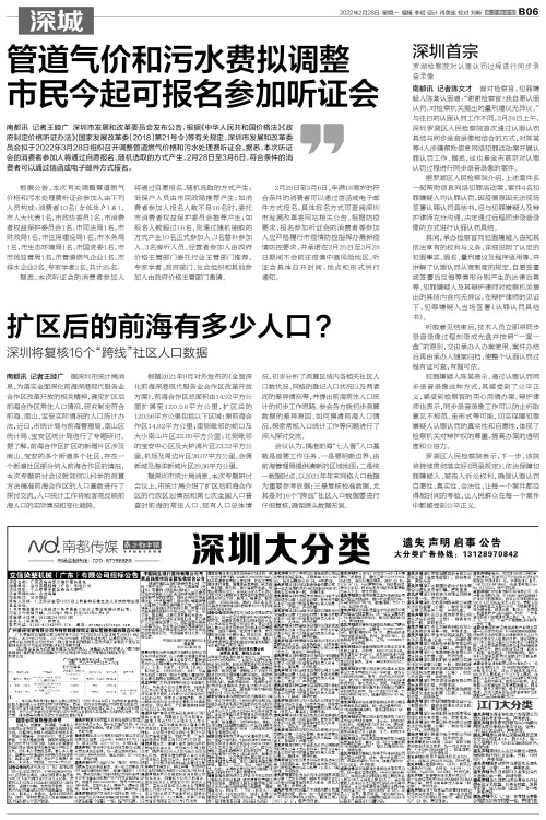 南都讯 记者王睦广 深圳市发展和改革委员会发布公告,根据《中华人民共和国价格法》《政府制定价格听证办法》(国家发展改革委〔2018〕第21号令)等有关规定,深圳市发展和改革委员会拟于2022年3月