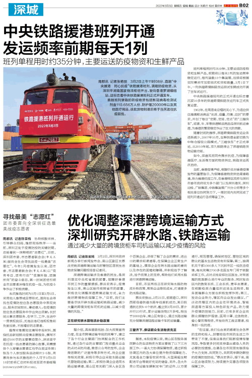 优化调整深港跨境运输方式 深圳研究开辟水路、铁路运输