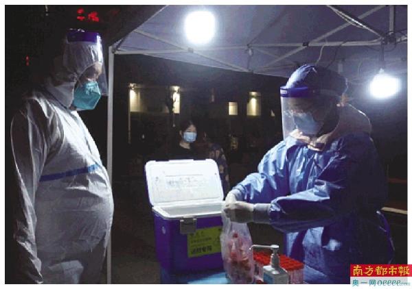 找到核酸检测点的“点长”,清点核酸标本数目,签名、消毒、装箱,对于肖瑞秋来说,这套流程,每两个小时就要来一次。肖瑞秋是金域医学专门运送核酸标本的员工,这次疫情发生后,肖瑞秋几乎每晚要到福田区一些核酸检测点运送标本,常常工作到凌晨两三点。作为抗疫工作中重要的一环,肖瑞秋觉得自己能帮到大家挺幸福。