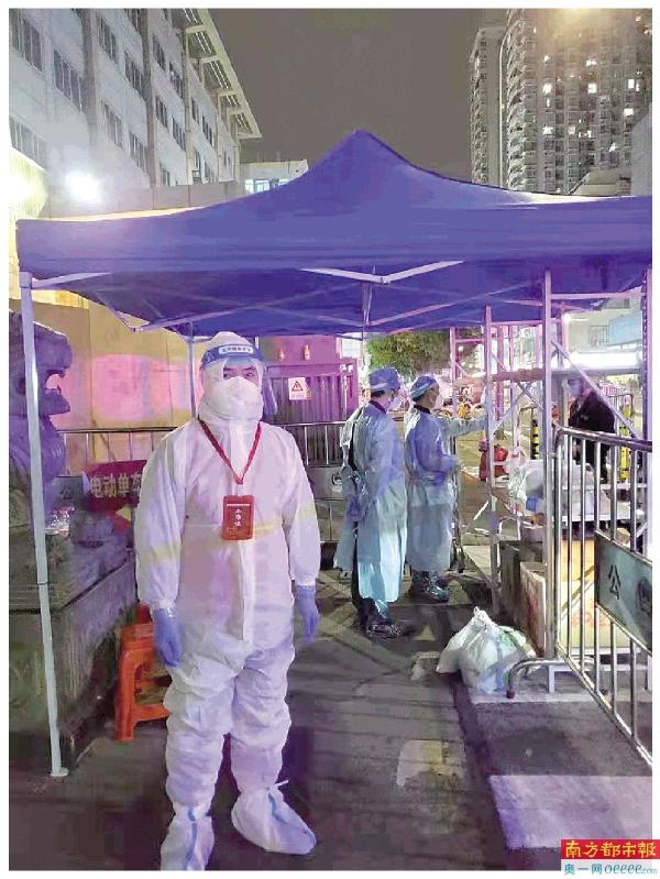 庞明辉说,核酸采样工作经常在凌晨后收工,但在夜间他一刻也不敢怠慢,志愿者们个个“火眼金睛”,看到行动不便的老人或特殊群体便积极主动上前搀扶。“有回凌晨1点,看到有孕妇还带着小孩在大榕树下排队,我立马上前搀扶,并指引她们前往绿色通道。”庞明辉说,连续几个夜晚,他都是凌晨2点左右结束志愿工作,从核酸采样点到他家有一段距离,但他更愿意选择徒步。“行走其中,看着夜晚的灯火,仿佛有一种温暖萦绕,我觉得是一种爱心的力量,让我格外的从容和温暖。”庞明辉提到,由于志愿服务说话指引较多,一段时间后他声音出现沙哑,目前正请假在家休息,待恢复后他仍然会继续投身志愿服务。他相信,只要大家齐心协力,便能打赢这场疫情防控狙击战。