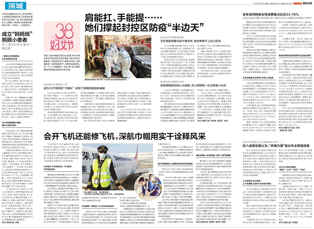 “女性”赋予了时代温柔的气息,但在深圳航空公司的各个岗位上,有一群优秀的女职工丝毫不让“须眉”。她们是从空军飞行员转型的女机长,是24小时待命的防疫办班组成员,是保障航班客运的乘务长,是飞机检修工