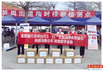 本次“消保防疫关爱站”系列活动主要分布在罗湖区、福田区、南山区、龙岗区、龙华区、宝安区。活动当天,在严格做好防疫措施的情况下,浦发银行志愿者们身着“消费者权益保护代言人”的红马甲,分别在多个核酸检测点建起“消保防疫关爱站”,现场给医护人员和等候检测的市民送上“防疫关爱包”——包括“防疫、消保”爱心提示、防疫口罩、75%酒精消毒巾。考虑到医务人员在高温天气长时间身着防护服,志愿者们还定制了“最美抗疫先锋”饮品以及其他物资,献给这些不辞辛苦的一线工作人员。志愿者们表示,该活动一是为了给排队等候较久的市民送上防疫爱心关怀,给长期坚守在抗疫一线的医务人员送去衷心的慰问。二者也借3.15消费者权益保护日之机,给市民和医护人员开设一堂金融知识小课堂。
