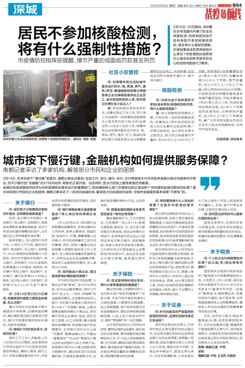 3月14日-20日期间,深圳要在全市范围内开展三轮全员核酸检测,但若有居民由于各种原因不参加核酸检测的,将会有什么强制性措施,后续如果造成危害将承担什么责任?市疫情防控指挥部办公室综合组昨天就市民