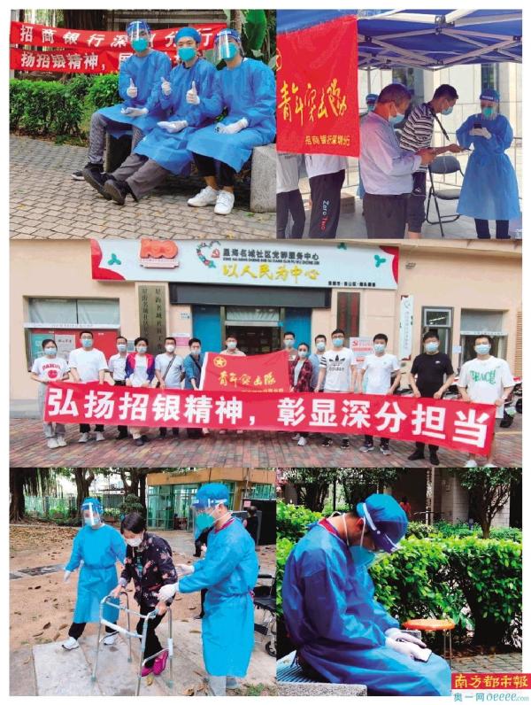 本轮疫情爆发以来,招商银行深圳分行一批又一批志愿者们不断奔赴“抗疫”一线,积极配合福田区、南山区、罗湖区等相关志愿服务队参与抗疫行动。积极响应深圳市团委的号召,3月15日,第一支青年突击队组建集结完毕,并赶赴南山区南头街道星海名城小区从事7天全封闭防疫抗疫行动。仅3月16日一天,11人服务队共完成165小时志愿服务,接打流调电话900余条,暖心热线接听286次,解决并反馈受疫情影响的居民民生问题230个,协助90余人次的上门核酸检测和8200人次现场核酸检测。