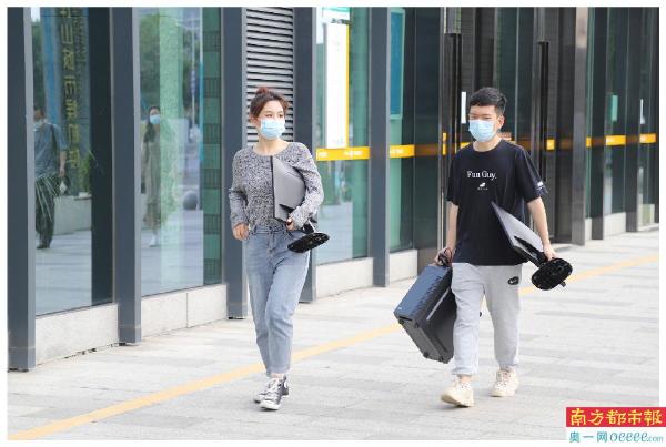 3月18日,坪山区不少企业恢复了生产。创新广场是坪山区中小企业集聚的园区,员工带电脑回办公室上班。