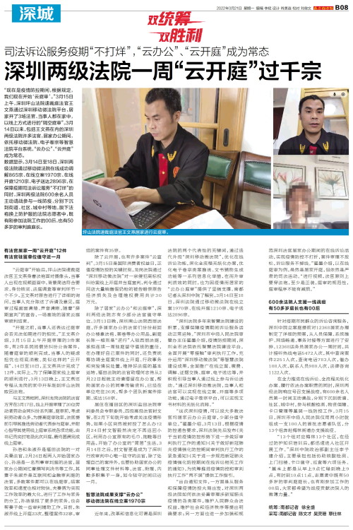 深圳两级法院一周“云开庭”过千宗