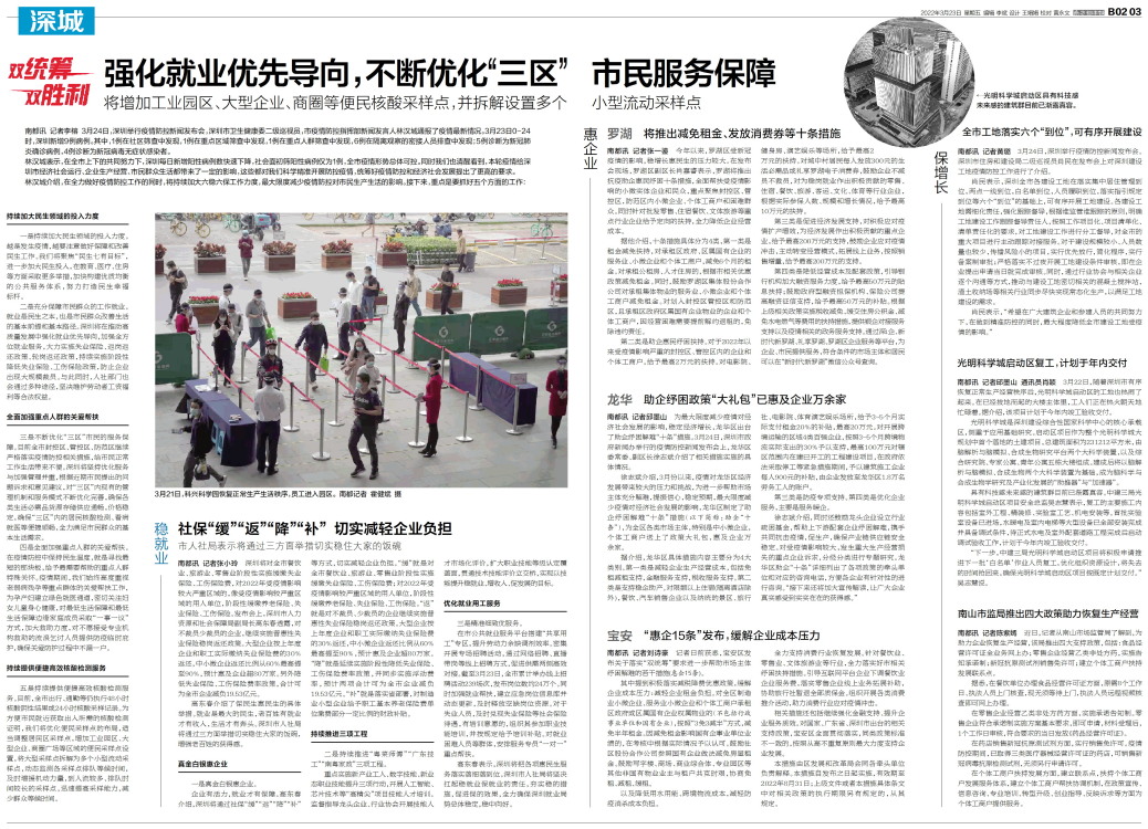 惠企业 南都讯 记者张一鎏 今年以来,罗湖区受新冠疫情的影响,稳增长惠民生的压力较大。在发布会现场,罗湖区副区长肖嘉睿表示,罗湖将推出抗疫助企惠民纾困十条措施,全面帮扶受疫情影响的小微实体企业和