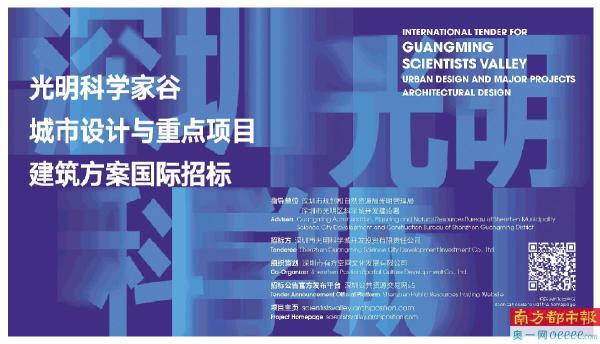 南都讯 记者邱墨山 3月31日,深圳公共资源交易网正式发布《光明科学家谷城市设计与重点项目建筑方案国际招标预审公告》,光明科学家谷城市设计与重点项目建筑方案国际招标正式启动,现面向全球设计团队开放报名。