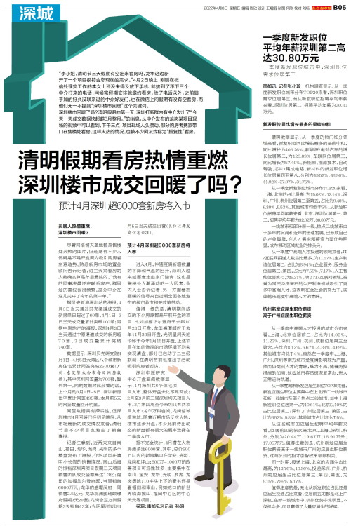 一季度新发职位平均年薪深圳第二高达30.80万元