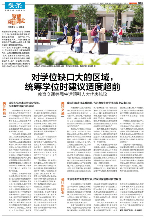 新增基础教育学位20万个,开通地铁12、14、16号线及6号线支线,打通断头路20条……4月11日上午,深圳市七届人大二次会议开幕,深圳市政府工作报告中提及的多个民生话题引起代表们的热议。 针对