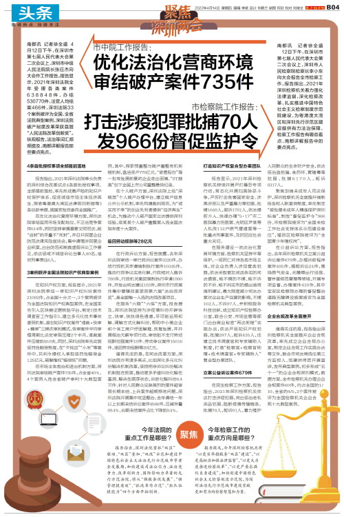 南都讯 记者徐全盛 12日下午,在深圳市第七届人民代表大会第二次会议上,深圳市人民检察院检察长李小东向大会报告全市检察工作。报告指出,2021年深圳检察机关着力强化法律监督,深化检察改革,扎实推