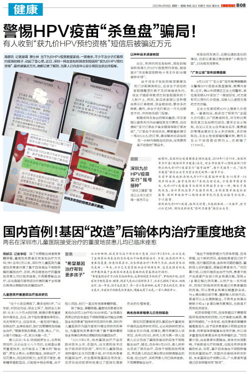 南都讯 记者谢萌 覃仕林 当下九价HPV疫苗数量紧俏,一苗难求。不少不法分子打着预约疫苗的幌子,动起了歪心思。近日,深圳一网友发帖称其收到短信称“获九价HPV预约资格”,最终被骗近万元。南都记者了