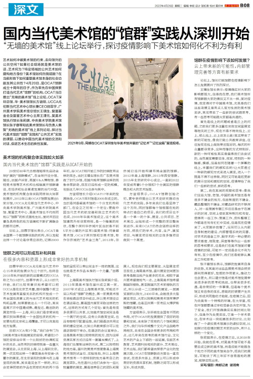 艺术如何冲破美术馆的约束,走向馆外的公共空间?如果社会现场就是美术馆的话,艺术何为?特定场域的公共艺术如何建构地方身份?美术馆如何自我赋能?在当前形势下如何重塑美术馆本身的社会功能及其公共性?4月