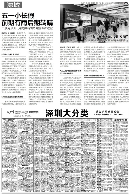 南都讯 记者张艳丽 4月26日是第22个世界知识产权日,深圳市知识产权联席会议办公室、市市场监管局(知识产权局)发布了《深圳市2021年知识产权白皮书》。当天,“有一种创新叫深圳发明”的知识产权主
