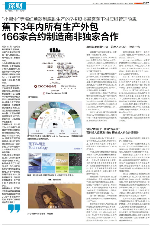 蕉下3年内所有生产外包 166家合约制造商非独家合作