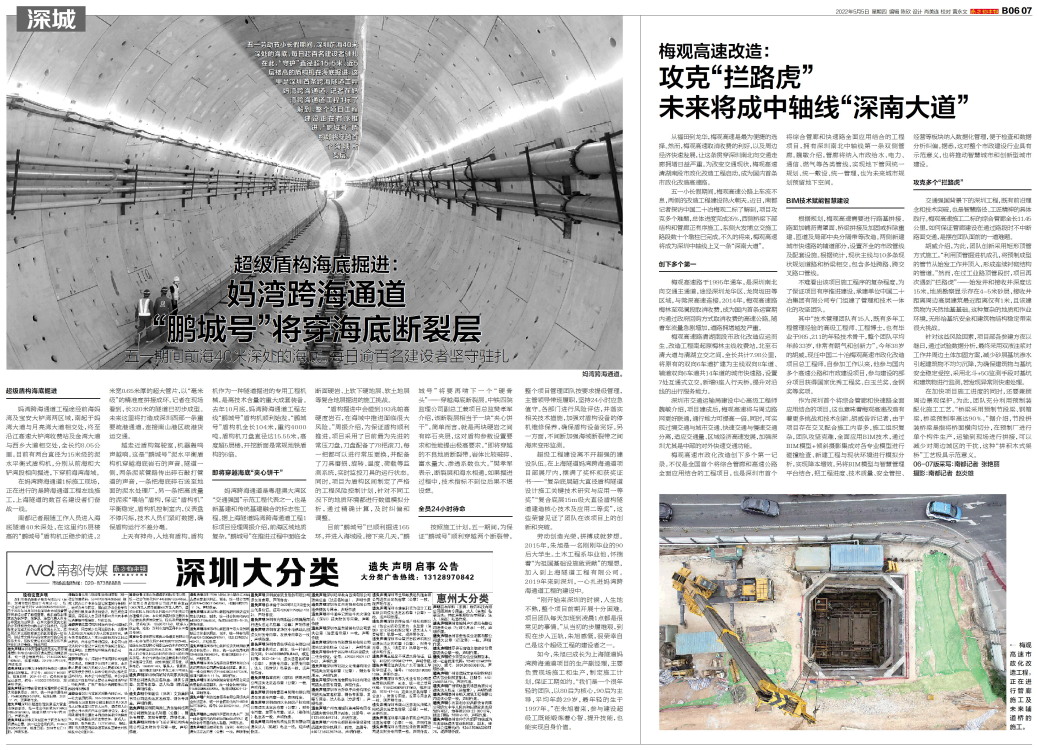 妈湾跨海通道“鹏城号”将穿海底断裂层