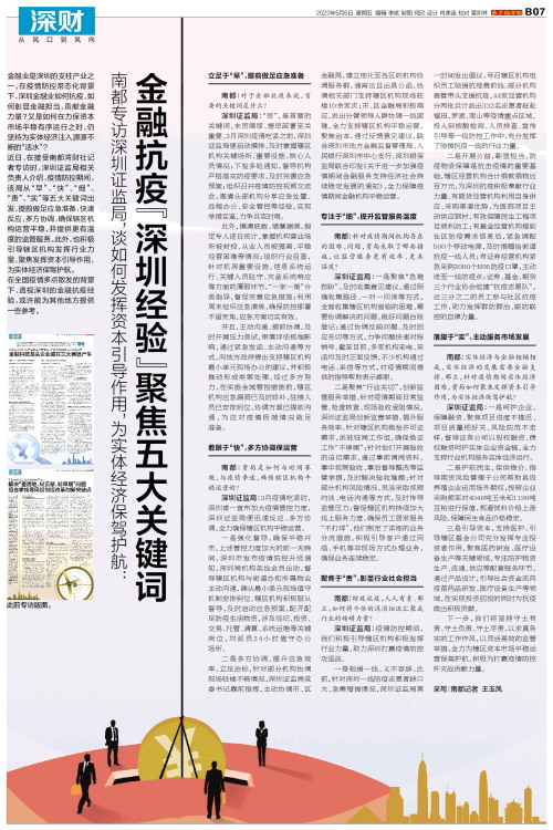金融业是深圳的支柱产业之一。在疫情防控常态化背景下,深圳金融业如何抗疫,如何彰显金融担当,贡献金融力量?又是如何在力保资本市场平稳有序运行之时,仍坚持为实体经济注入源源不断的“活水”?近日,在接受