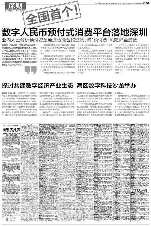 南都讯 记者卢亮 “预付费”存在风险?深圳数字人民币又有创新模式。5月6日,在中国人民银行深圳市中心支行与深圳市地方金融监督管理局的见证下,福田区政府联合深圳建行举办全国首个数字人民币教培机构预付