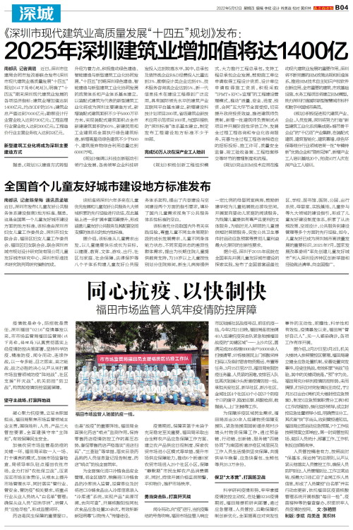 南都讯 记者黄璐 近日,深圳市住建局会同市发改委联合发布《深圳市现代建筑业高质量发展“十四五”规划》(以下简称《规划》),明确了“十四五”期末深圳现代建筑业发展的各项经济指标:建筑业增加值达到14