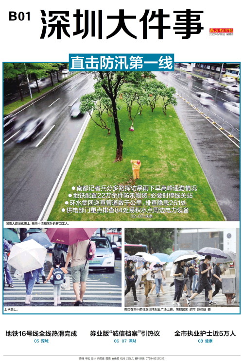 南都记者兵分多路探访暴雨下早高峰通勤情况 地铁配置22万余件防汛物资,必要时停线关站 环水集团巡查管道数千公里,排查隐患261处 供电部门重点排查84处易积水点周边电力设备 02-03·头