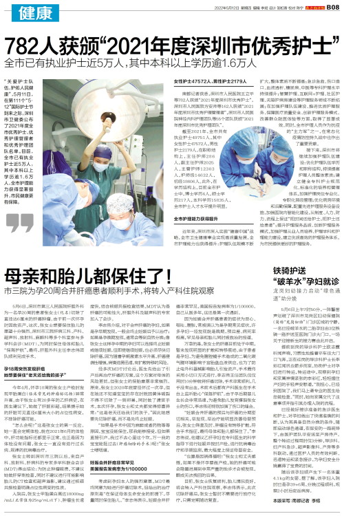 5月6日,深圳市第三人民医院肝胆外科为一名孕20周的患者张女士(化名)切除了直径达6厘米的肝癌肿瘤。由于前一次怀孕时因故流产,这次,张女士想要保住胎儿的愿望十分强烈。深圳市三院肝病三科、产科、超声