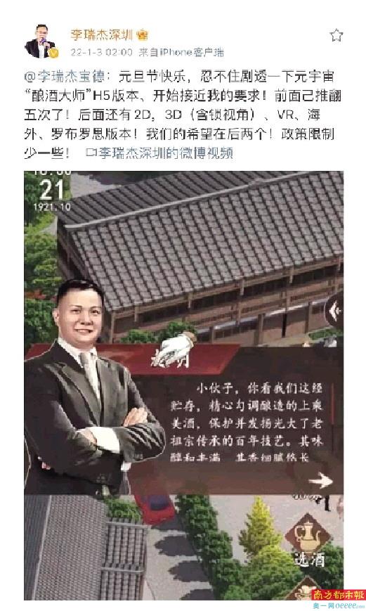 中青宝2021年报显示,公司旗下游戏《酿酒大师》H5版本已落地,初步阶段产品已实现提酒功能。