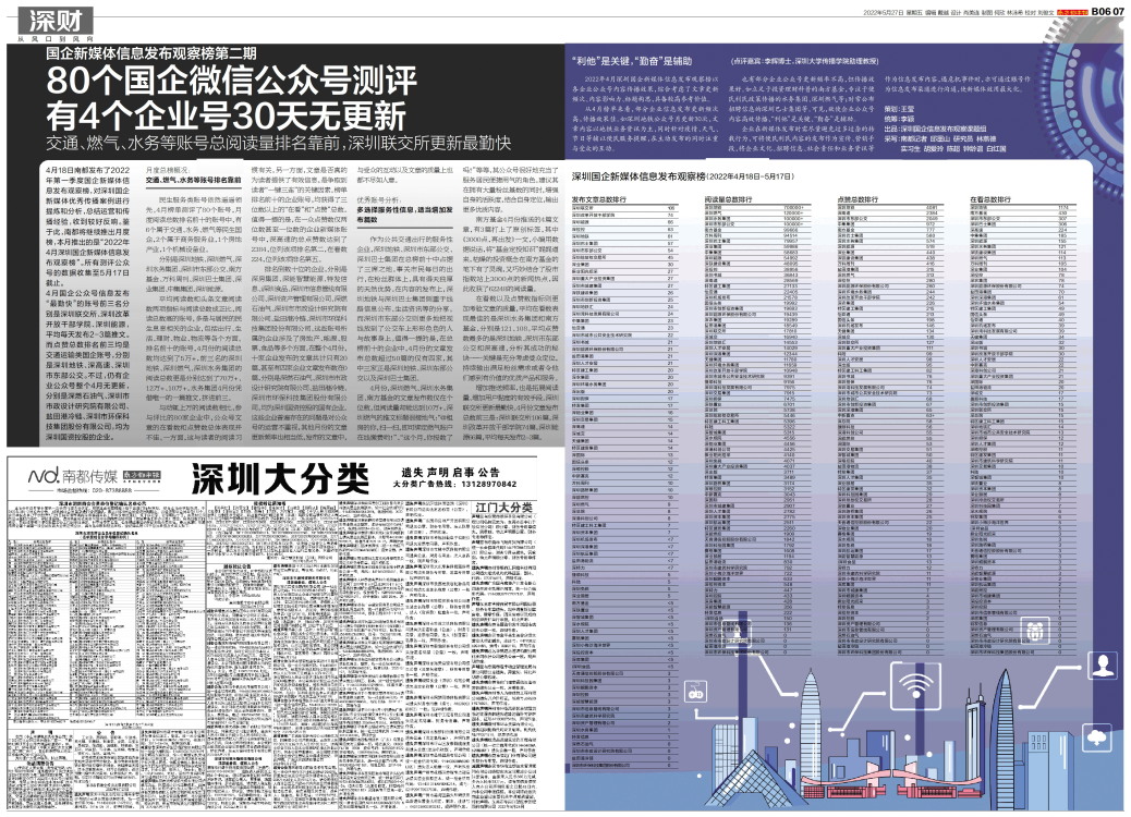 深圳国企新媒体信息发布观察榜(2022年4月18日-5月17日) 深圳国企新媒体信息发布观察榜(2022年4月18日-5月17日) 深圳国企新媒体信息发