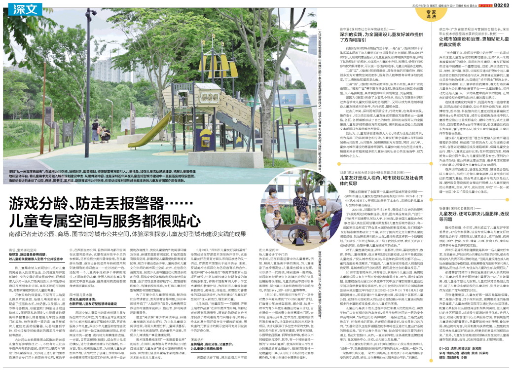 坚持“从一米高度看城市”,在城市公共空间、法规制定、政策规划、资源配置等方面引入儿童视角。加强儿童活动场地建设,拓展儿童服务阵地和活动平台,将儿童需求充分融入城市规划建设中去,从硬件到内容,这是深