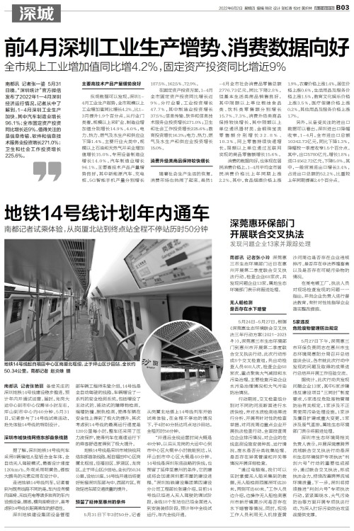 地铁14号线起自福田中心区岗厦北枢纽,止于坪山区沙田站,全长约50.34公里。 南都记者 赵炎雄 摄