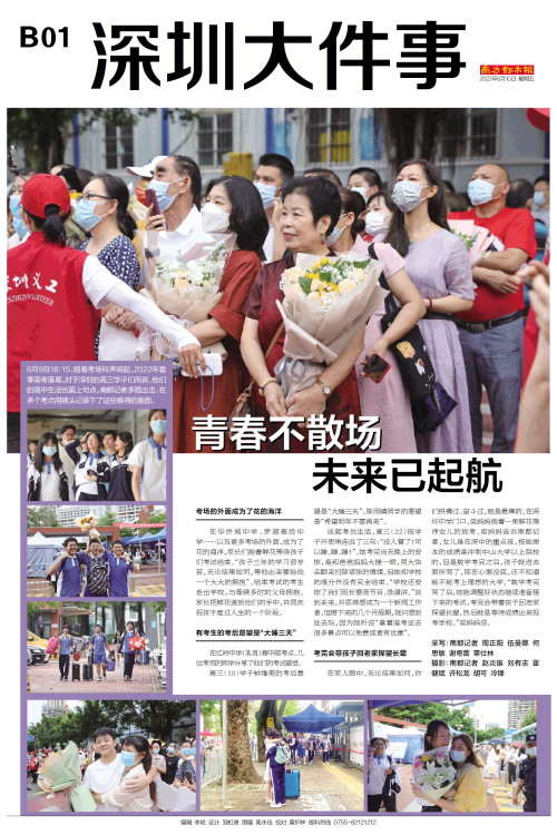 6月9日18:15,随着考场铃声响起,2022年夏季高考落幕。对于深圳的高三学子们而言,他们的高中生活也画上句点。南都记者多路出击,在多个考点用镜头记录下了这些难得的画面。 考场的外面成为了花的