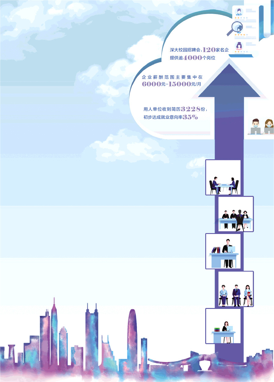 南都讯 记者张小玲 6月12日下午,由深圳市人力资源和社会保障局、深圳大学联合主办的2022年深圳大学就业(实习/见习)校园招聘会在深圳大学粤海校区举行。据统计,本届校园招聘会共吸引1800名毕业生进场求职,用人单位共收到简历3228份,初步达成就业意向率35%,技术研发类、财务类、营销策划类岗位等需求最为旺盛。另深圳市人社部门将牵头举办校园招聘暨网络招聘月活动10场,活动贯穿全年,其中线下校园招聘活动4场,专题网络招聘月活动6场。