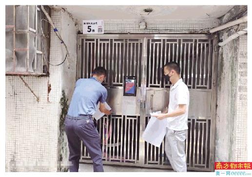 社区工作人员在小区的楼栋单元门口处张贴《深圳市龙华区民治街道瓶装燃气服务点一览表》,保障居民正常生活用气。 受访者供图