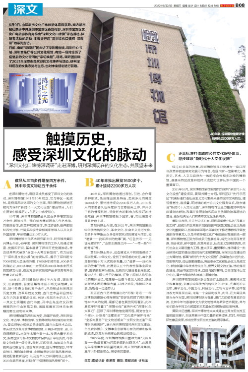 6月9日,由深圳市文化广电旅游体育局指导,南方都市报社携手中共深圳市宝安区委宣传部、深圳市宝安区文化广电旅游体育局推出“深圳文化口碑榜”评选活动。伴随着活动的启动,本报亦开启“深圳文化口碑榜 深调