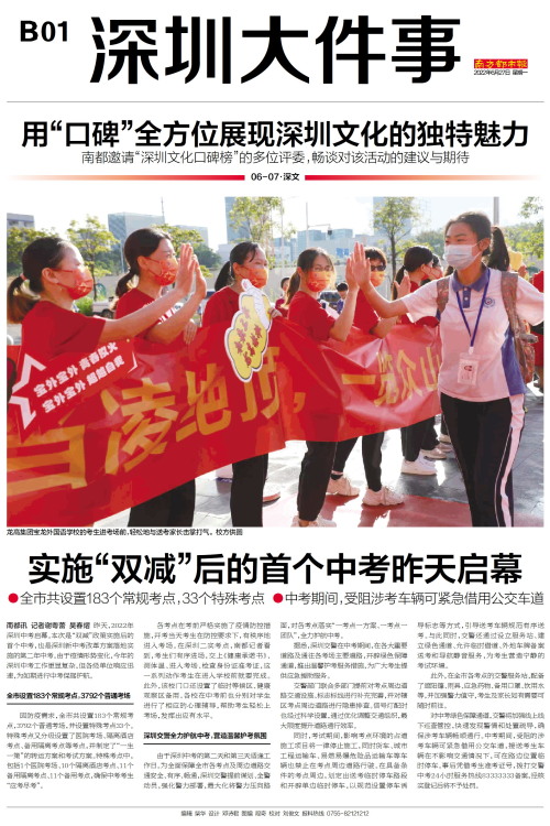 南都讯 记者谢粤蕾 吴春熠 昨天,2022年深圳中考启幕。本次是“双减”政策实施后的首个中考,也是深圳新中考改革方案落地实施的第二年中考。由于疫情形势变化,今年的深圳中考工作更显复杂,但各级单位响