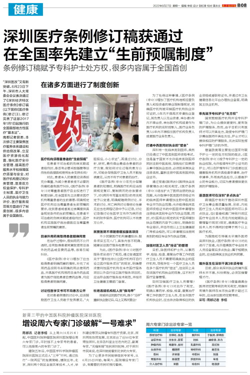 深圳医疗条例修订稿获通过 在全国率先建立“生前预嘱制度”