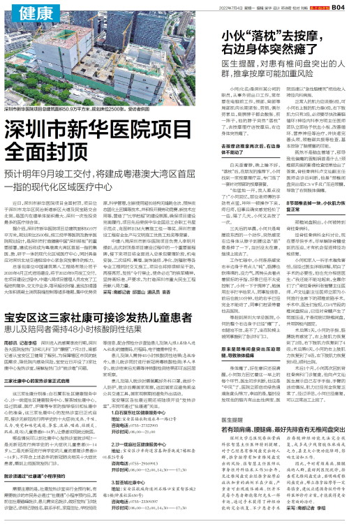 南都讯 记者李榕 深圳进入流感夏季流行期,深圳各大医院发热门诊和儿科门诊“爆棚”。7月2日,南都记者从宝安区卫健局了解到,为保障辖区市民的就医需求、降低院内感染风险,宝安近日开设了3家社康中心发热