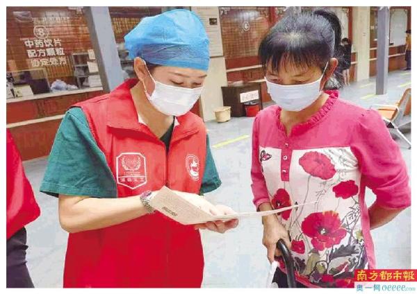 志愿者给医院的患者及家属介绍生前预嘱的内容。 受访者供图