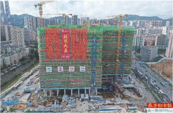 经过两年的建设,7月12日,深圳市第二儿童医院顺利实现主体结构全面封顶。目前,该项目正式进入二次结构及装饰装修阶段,预计2023年6月交付,计划于当年12月试运营。