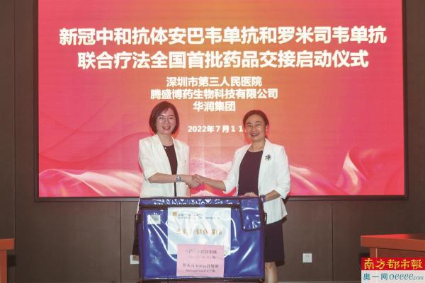 2022年7月9日,新冠中和抗体安巴韦单抗和罗米司韦单抗联合疗法全国首批药品顺利送达深圳市第三人民医院。7月11日,药物交接仪式圆满完成。这批药物共计100人份,全程在2-8℃冷链环境下储存。