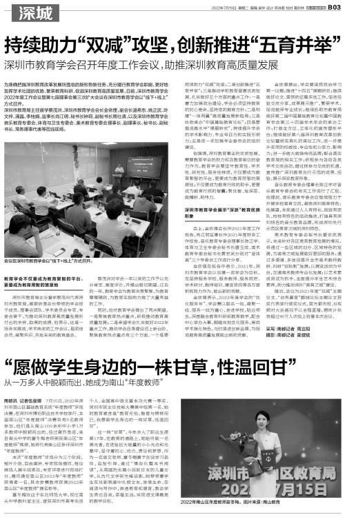 为准确把握深圳教育改革发展所面临的新形势新任务,充分履行教育学会职能,更好地发挥学术社团的优势,繁荣教育科研,促进深圳教育高质量发展,日前,深圳市教育学会2022年度工作会议暨第七届理事会第三次扩