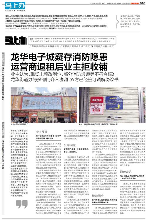 龙华电子城疑存消防隐患 运营商退租后业主拒收铺