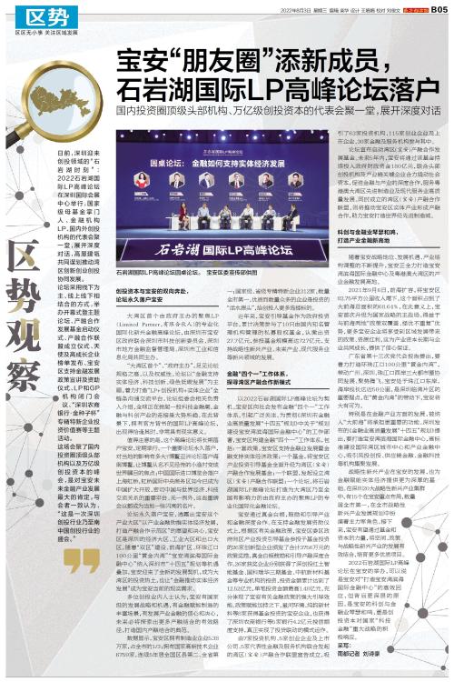 宝安“朋友圈”添新成员,石岩湖国际LP高峰论坛落户